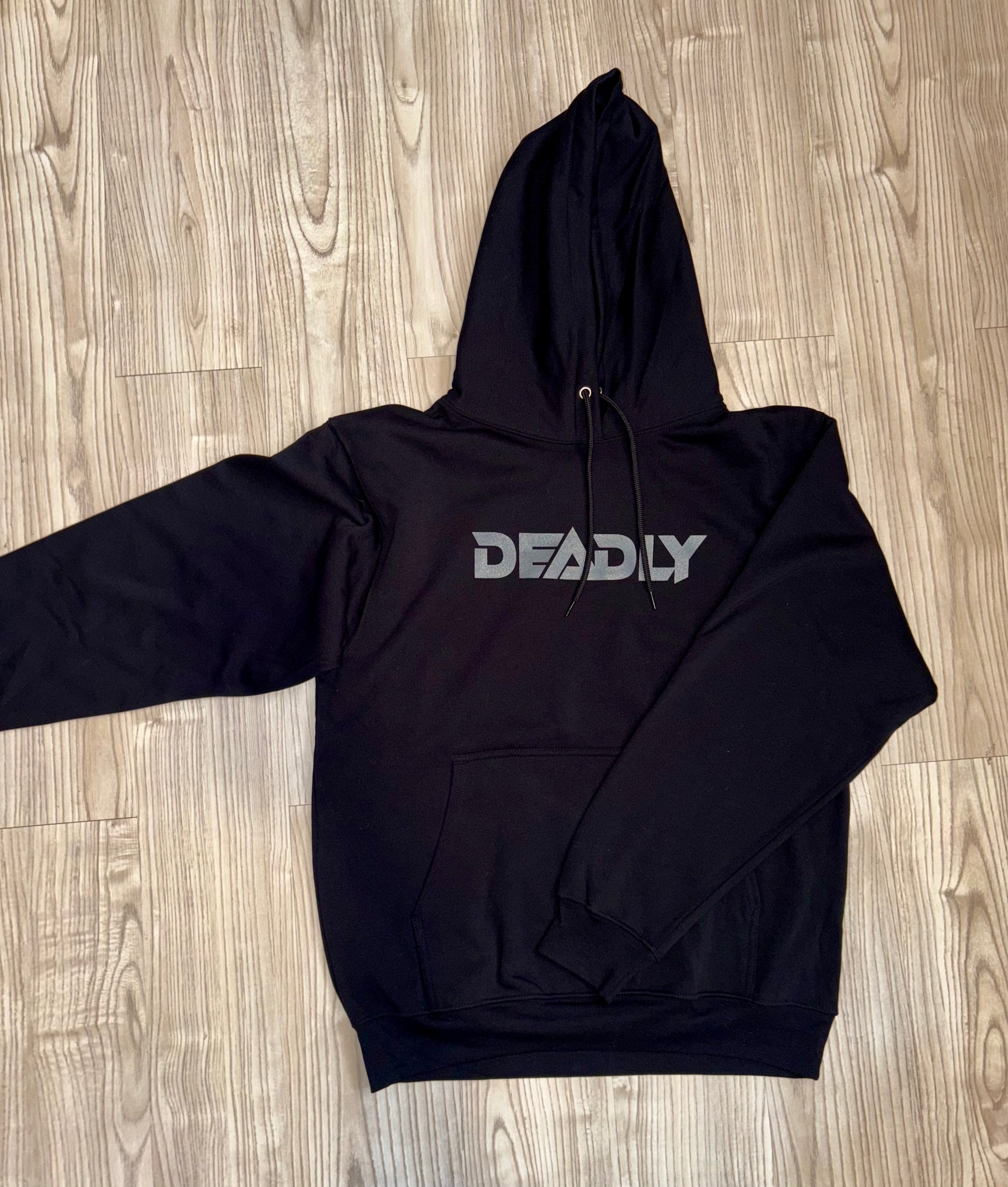 A revamped style of our bestseller, our black deadly pullover hoodie with carbon grey